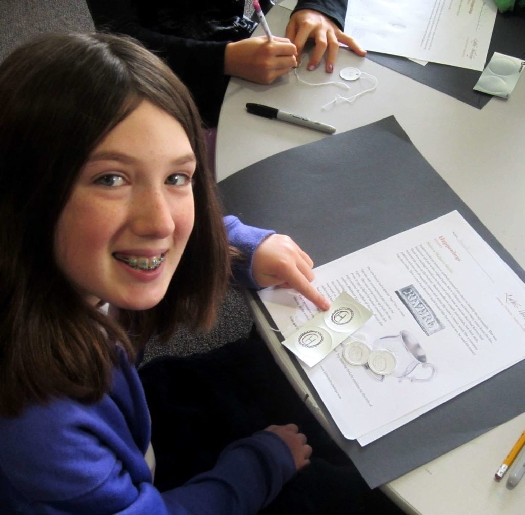 This book is less about a revolution than about a boy's recovery, inside and out. Though the war gives him a chance to "stand up" and prove he's become a man, the story itself is about recovering from loss and reshaping one's life to be something shiny and new. We loved the perfect metaphor of silversmithing in this book, and the many opportunities the historian author gives us to learn what life was like in this tumultuous period. So we chose it for one of our experiential workshops. It turned out to be one of our best--not just fun, but packed with great takeaway topics, which we're sharing below.